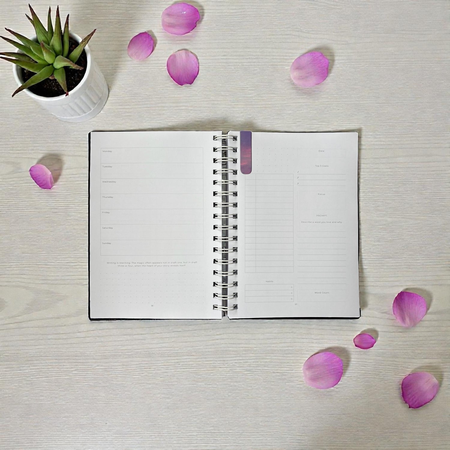 A robust bullet-style planner that helps you manage daily tasks and writing goals.